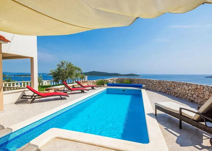 Smještena na 10-minutnoj vožnji od starog trogirskog plaža, troetažna vila Valentina s tri spavaće sobe pruža pristup raznim turističkim atrakcijama u okolici.